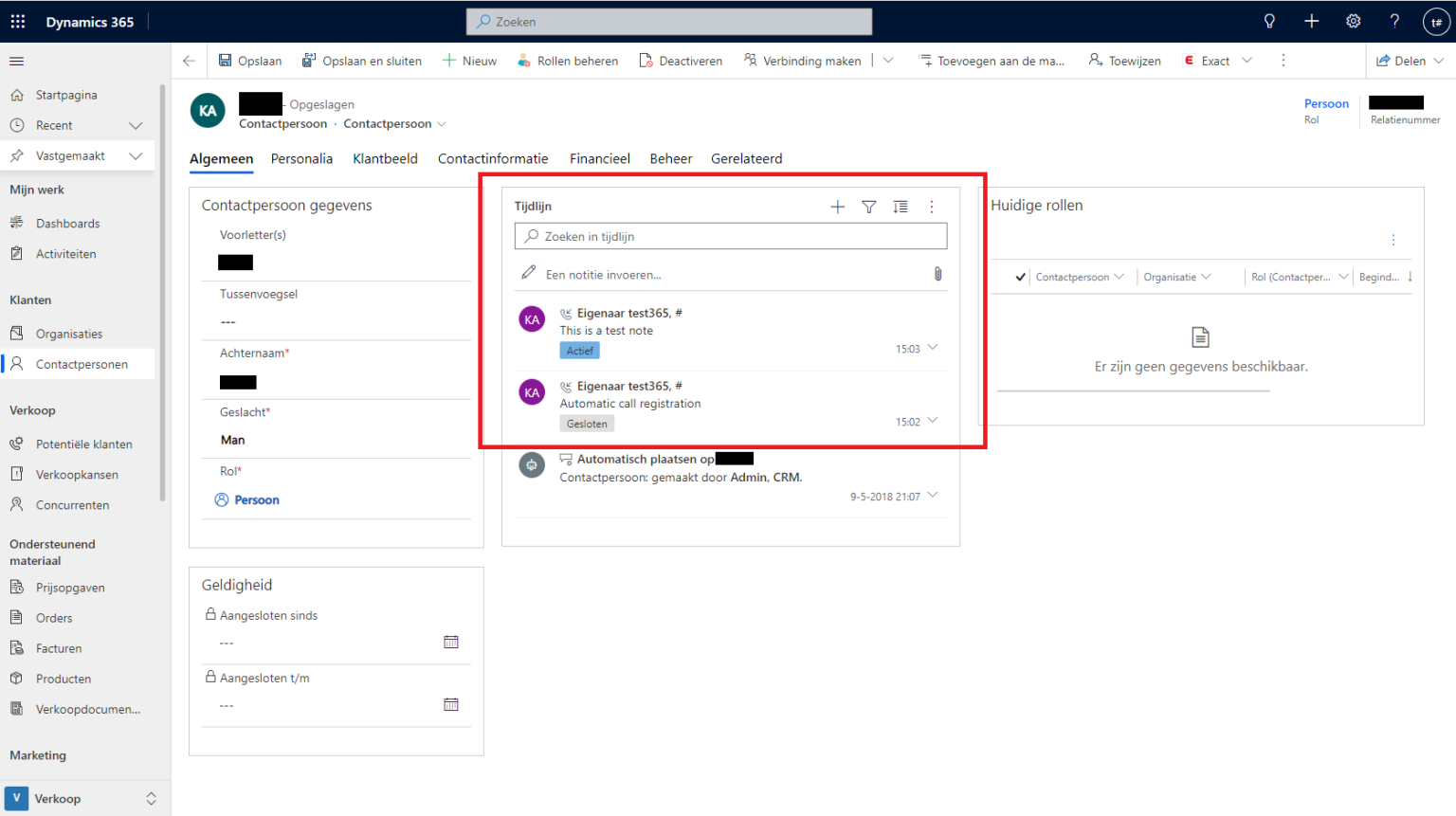 - Aan het einde van elk gesprek wordt er een Call Registratie naar het CRM gepusht, zodat elk gesprek onder de relatiekaart in het CRM wordt gelogd.